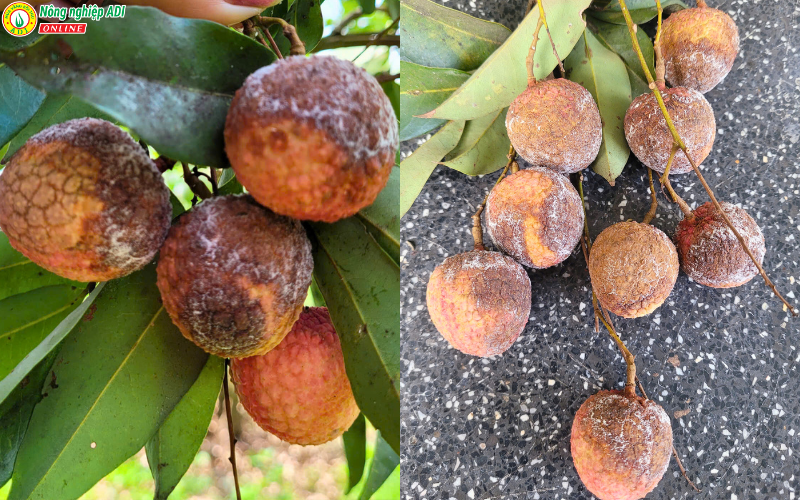 – Trái vải xuất hiện lớp mốc trắng, vỏ thâm đen, giảm chất lượng nghiêm trọng