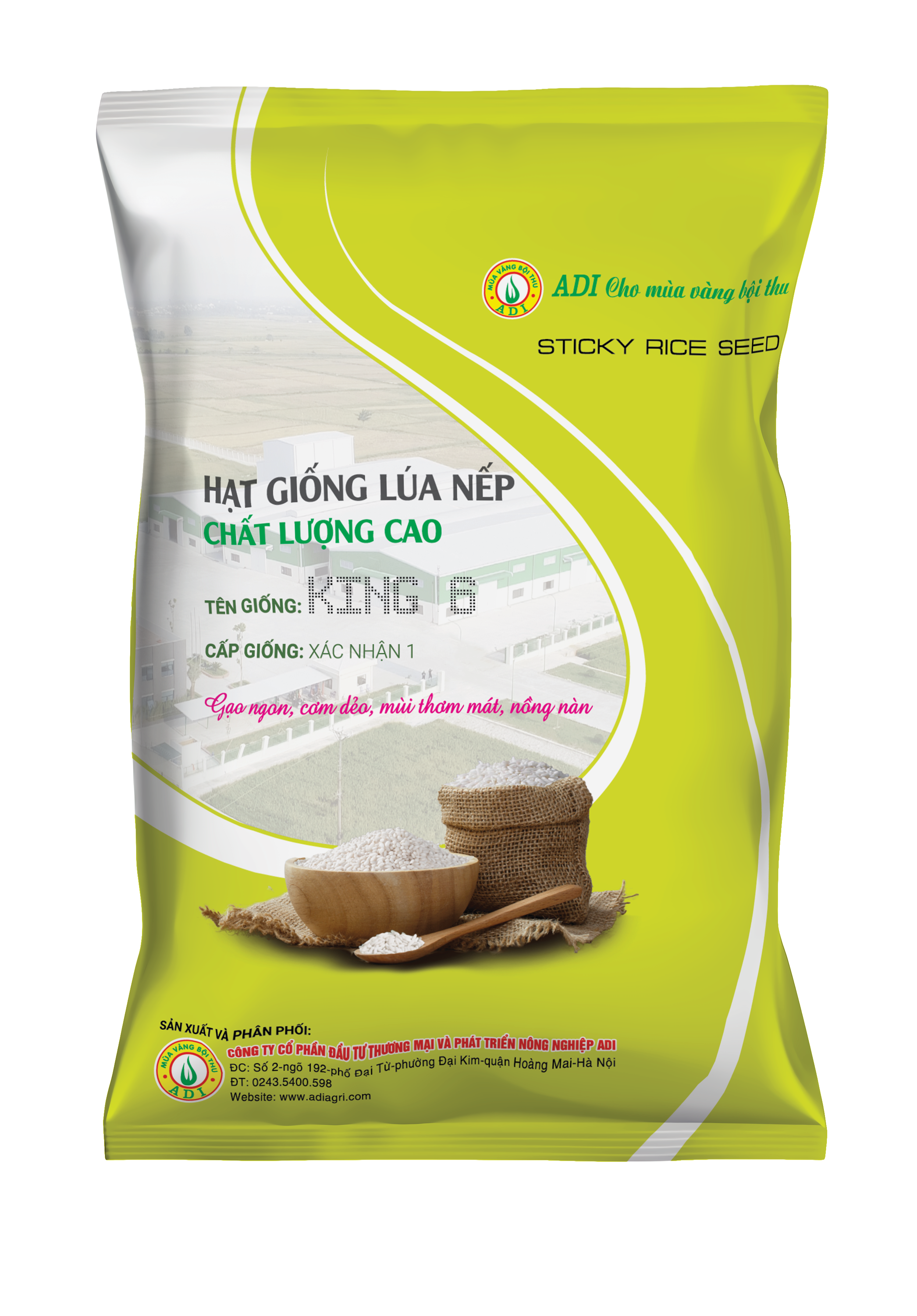 – Giống lúa thuần KING 6 là giống lúa được công nhận là giống quốc gia thuộc sở hữu, sản xuất và kinh doanh bởi Công ty Cổ phần Đầu tư thương mại và phát triển ADI.